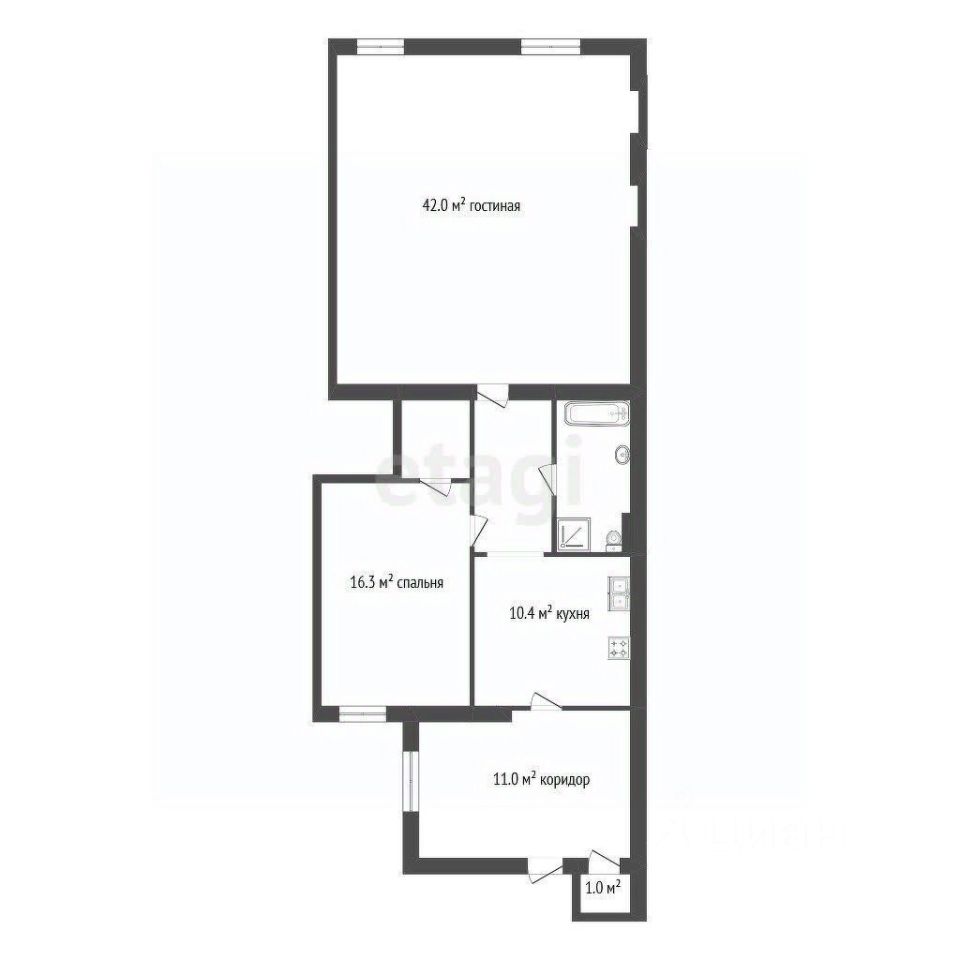 Комнаты площадью 42 м² и 16,3 м².