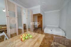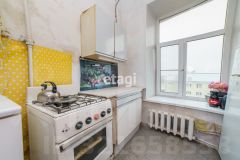 В квартире пять комнат, из которых одна пустует, соседи все приличные, всего четыре человека. Места общего пользования в хорошем состоянии, заменена электрика, сделан косметический ремонт в санузлах, в ванной плитка. В кухне собственнику комнаты принадлежит два стола, один из которых у окна. Стиральная машинка в ванной также остаётся покупателю.