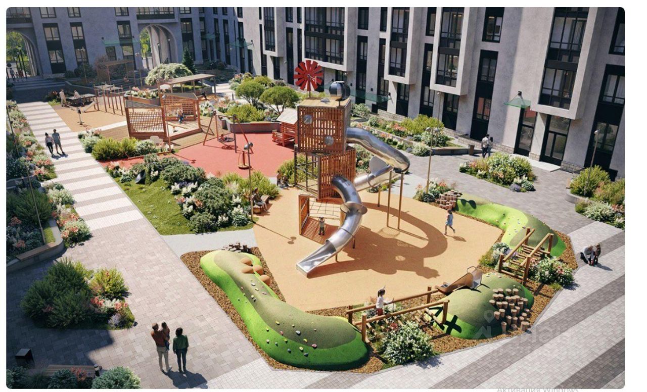 На территории комплекса имеются два детских сада, школа, спортивные и детские площадки, разделенные по возрастам, а также места для отдыха. Зонирование создано с помощью озеленения, дорожек, подпорных стен и геопластики. В проекте предусмотрен подземный паркинг и кладовые на -1 этаже, а также система контроля доступа и видеонаблюдение.
