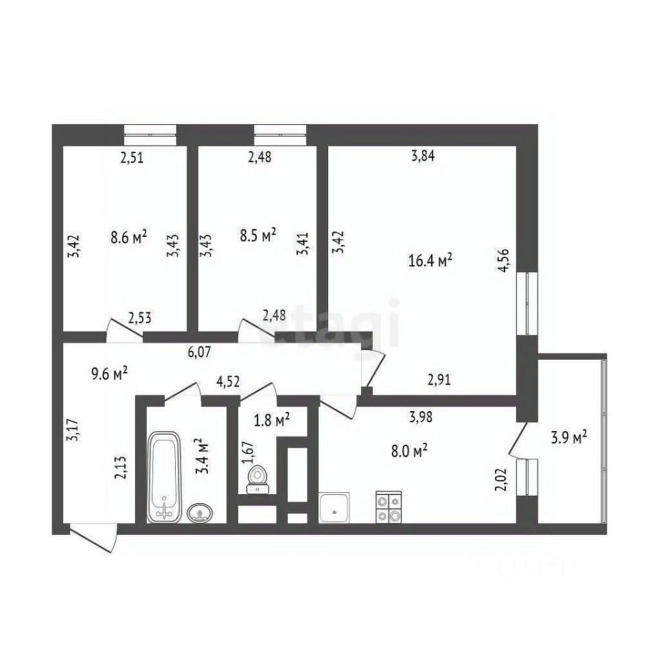 Панельный дом 2014г.п. Двусторонняя квартира на 15 эт/17 эт. дома. На этаже 4 квартиры, площадка закрывается на ключ. Комнаты изолированные. Общая площадь без учета лоджии 56,3 кв.м; комната 1 16,4кв.м, комната 2 8,5кв.м, комната 3 8,6кв.м., кухня 8кв.м; прихожая 9,6кв.м; потолок 2,75м; раздельный санузел. В комнате большие окна. Лоджия с панорамным остеклением с видом на Финский залив. Окна во двор. В квартире установлены регулируемые счетчики отопления. Два лифта Otis. УК содержит в порядке дом и придомовую территорию.