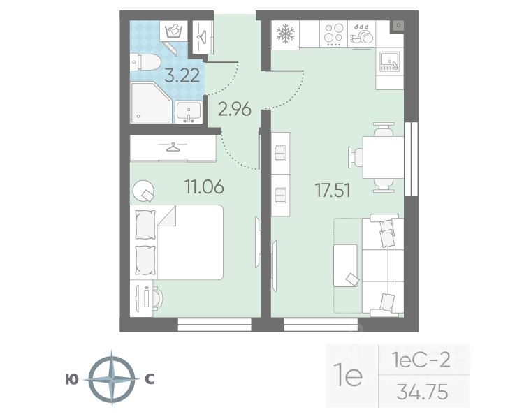 Продается 1-комнатная квартира в ЖК "Морская миля" на 6 этаже. Общая площадь составляет 34.75 кв. м. Квартира с чистовой отделкой. Жилой комплекс "Морская миля" располагается по адресу Санкт-Петербург, Красносельский.