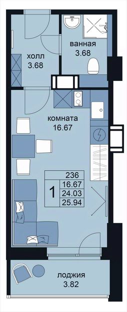Продаётся студия-апартаменты в сданном доме (Крыленко, 14с3 (Дом 16)), срок сдачи: IV-кв. 2023, общей площадью 27.5 кв.м., на 10 этаже. В стоимость входит полная чистовая отделка.