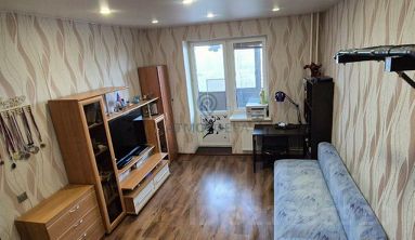 Комната правильной формы с качественным ламинатом и гидроизоляцией полов, натяжными потолками и большим застекленным балконом. Балкон оснащен подведенным электричеством.