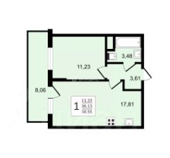 Общая площадь квартиры составляет 39 кв. м, из которых жилая площадь — 11,23 кв. м. Благодаря большой кухне площадью 17,9 кв. м можно организовать пространство по своему вкусу. Высота потолков 2,8 м создаёт ощущение простора и свободы. Окна выходят на улицу, а наличие лоджии позволяет наслаждаться видами и свежим воздухом.