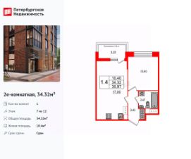 Удобная, классическая, функциональная европланировка, большая кухня-гостиная 17 м², вместительная прихожая 3.45 м². Общая площадь квартиры - 34.32 м², жилая  10.4 м², высота потолка 2.77 м.