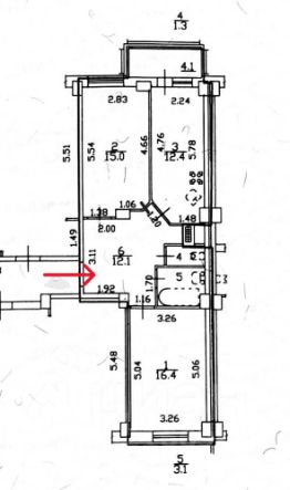 Квартира ухоженная, светлая, очень теплая. Кирп/Мон. Общ пл- 60.3м( по ЕГРН)+площадь балкона -4.1м .Широкий застекленный балкон (выход из кухни ). Кухня- 12.4м, изолированные комнаты -15м + 16.4м, с/узел-разд(ванна), холл- 12.1м .  Высота потолков -2.75м.