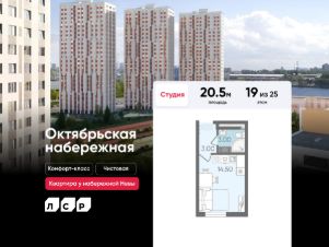 Продается студия в ЖК "Октябрьская набережная" на 19 этаже. Общая площадь составляет 20.50 кв. м. Квартира с чистовой отделкой . Жилой комплекс "Октябрьская набережная" располагается по адресу Санкт-Петербург, Невский.