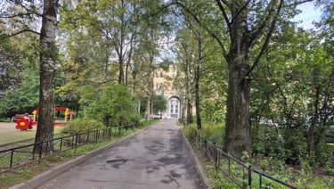 - Из арки дома вход в живописный Удельный парк, идеальное место для утренних пробежек и вечерних прогулок.
