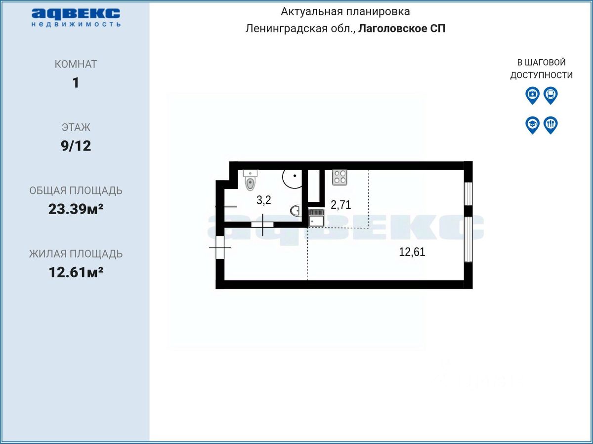 Студия 23,4 кв.м. с чистовой отделкой в ЖК "Квартал Лаголово" (Самолёт)