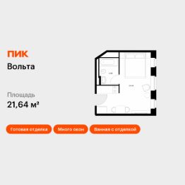 Продаются апартаменты-студия площадью 21,64 кв.м на 9 этаже 15 этажного дома (Вольта, Секция 1) проекта ПИК Вольта.