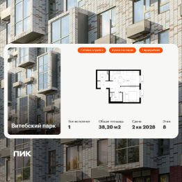 Продаётся 1-комн. квартира площадью 38,2 кв.м на 8 этаже 12 этажного дома (Корпус 7, Секция 1) проекта ПИК Витебский парк. Светлый просторный подъезд на уровне земли, функциональная планировка, большие окна, c отделкой.