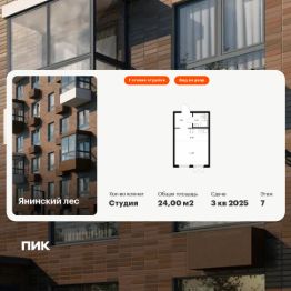 Продаётся квартира-студия площадью 24 кв.м на 7 этаже 15 этажного дома (Корпус 9, Секция 1) проекта ПИК Янинский лес. Светлый просторный подъезд на уровне земли, функциональная планировка, большие окна, c отделкой.