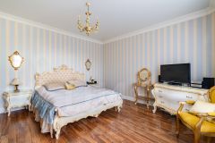 На третьем этаже - холл, две спальни с king-size и queen-size кроватями и балконами, кабинет, просторная ванная комната с джакузи и выходом на самый большой и приватный балкон дома и гардеробная с окном. Высота потолков - 3,2 метра.