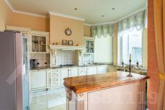 На втором этаже - санузел и большая кухня-гостиная с диванной и обеденной группой, просторной кухней с островом и эркером, а также двумя балконами.