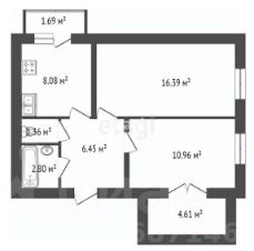 Двухкомнатная квартира - 16,39 кв.м + 10,96 кв.м, в которой выполнен хороший косметический ремонт, окна выходят во двор. Просторный коридор - 6,45 кв.м , где можно разместить места под хранения. В одной из комнат - 10,96 кв.м есть вместительная гардеробная 4,61 кв.м. Кухня - 8,8 кв.м с выходом на застекленный балкон. Раздельный санузел