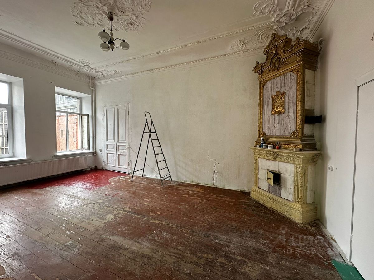 Атмосфера и редкость: в одной из комнат — историческая печь-камин конца XIX века. Можно оставить как интерьерный центр и повысить вау-эффект, либо аккуратно демонтировать и реализовать отдельно как антикварный предмет. При любых изменениях соблюдать требования действующего законодательства по историческим домам.