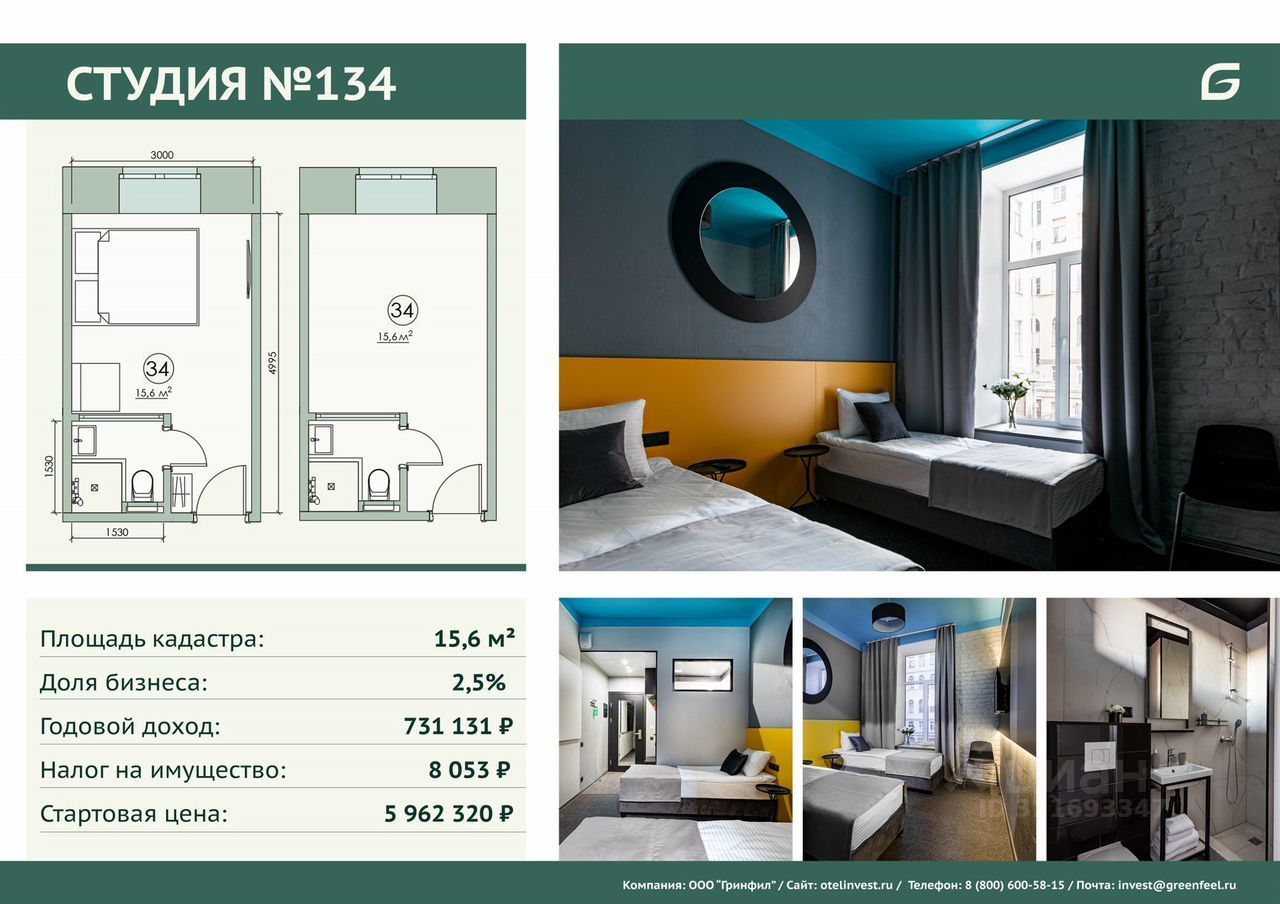 Инвестиционное предложение Апарт-отеля в Санкт-Петербурге от Greenfeel. Успей вложиться сейчас. Повышение цен каждую неделю на 1% 28% средняя доходность наших инвесторов Работаем с 2016 года Звоните нам прямо сейчас, сделайте шаг к финансовой независимости! Наша компания предлагает вам уникальную возможность стать партнером в мире доходной недвижимости! Greenfeel — эксперт в создании доходной недвижимости. Мы превращаем здания в регионах России в современные апарт-отели 3-звезды и 4-звезды по европейским стандартам. Стабильный доход и полная прозрачность обеспечиваются нашей управляющей компанией. Характеристика апартаментов: — Локация: Санкт-Петербург, Лермонтовский пр-т 50, в 7 мин ходьбы от станции метро Балтийская и Балтийского вокзала — Площадь: 15,6 м² — Этаж: 2 — Доход от аренды в месяц: от 60 928 руб. -.