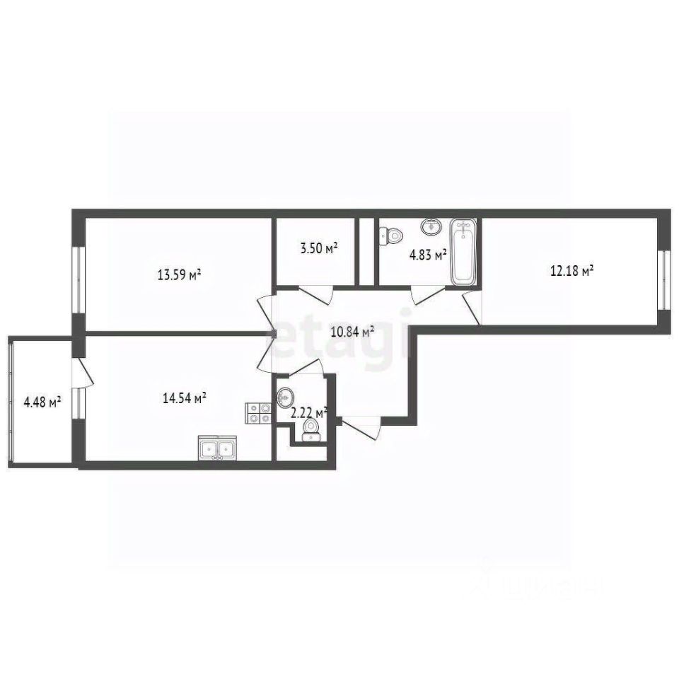 - Площадь 61,7 м2 плюс лоджия 4,48 м2