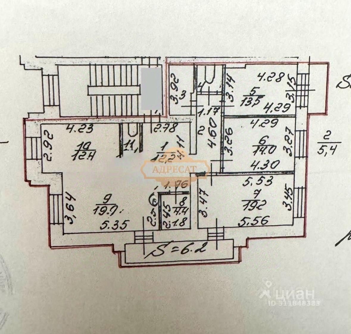 Общая площадь квартиры 108,5 кв.м. плюс 2 большие остекленные лоджии.