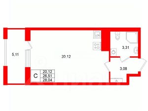 Удобная, классическая, функциональная европланировка, просторная прихожая 3.08 м2. Общая площадь студии -26,51  м2, жилая  20,12 м2, высота потолка 3,05 м.