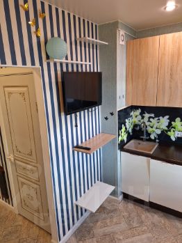 Квартира светлая, выполнена в бело-голубой цветовой гамме. Расположена на 2 этаже. Окна выходят на тихую улицу.