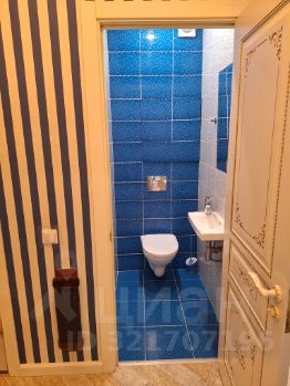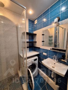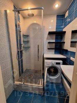 Санузел раздельный. Душевая кабина, стиральная машина. Есть полки для хранения.