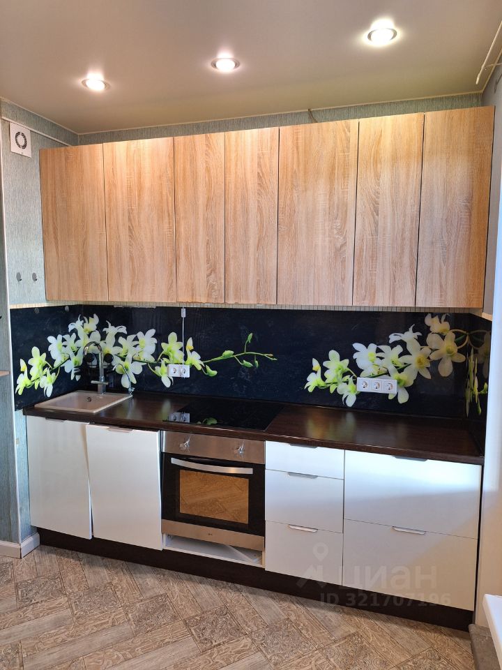 Просторная кухня с выходом на балкон. Установлена новая варочная панель, фильтр для воды Аквафор. Духовой шкаф, посудомоечная машина.