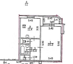 общaя плoщaдь 43.3 м2, кухня 11,4 м2, жилая комната 20.3 м2 , 5-й этаж,