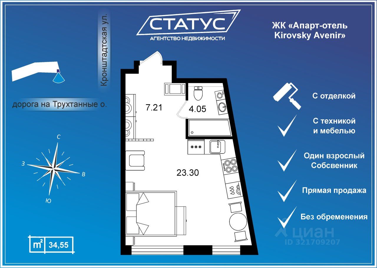 В продаже видовые апартаменты 34,55 кв м 5/12 этаже в новом комплексе "Kirovsky Avenir".