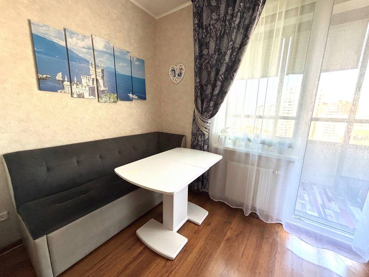 Арт. 116410059 Продается квартира подготовленная для комфортной жизни. Отличительная особенность квартиры - большая застеклённая лоджия на комнату и кухню. Вид из окон красивый, на юго-запад.  Квартира ухоженная, чистая и светлая. Качественная мебель и техника остается частично, по договоренности. Дом повышенной комфортности с системой умный дом, оснащен  грузовым и пассажирским  лифтом, ведется видеонаблюдение , доброжелательные соседи. Социальных квартир в доме нет.  Таких домов в микрорайоне Новая Охота мало. На площадке 5 квартир, все счётчики расположены вне квартиры. Дом на две парадные. Вокруг расположены такие же малопарадные дома, в окружении детских, спортивных площадок и зелёной зоны, есть детские сады и школы , торговый комплекс и фитнес с бассейном. Собственность от застройщика, материнский капитал не использовался, ипотека выплачена. Встречная покупка двухкомнатная квартира.