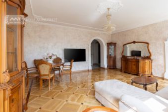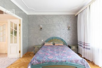 Дизайнерский ремонт, натуральная гипсовая лепнина на потолке, высота которого 3 метра, на стенах декоративная штукатурка, пол - натуральный дубовый паркет.