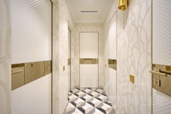 Два санузла с сантехникой Cisal, гипсовыми бра Masiero Tiepolo и мозаичными панно.