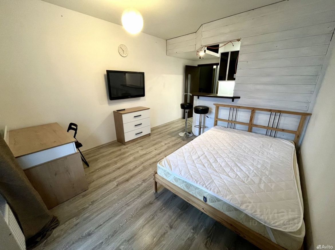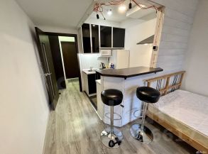 Общая жилая площадь: 24.5 кв.м.Квартира с евро-ремонтом и разумным зонированием, которое позволило компактно и с толком использовать имеющееся пространство! Полноценная кухонная зона с гарнитуром, холодильником, плитой, посудомоечной машиной и барным столом, а также достаточно пространства для двуспальной кровати, доп. шкафа и рабочей зоны.