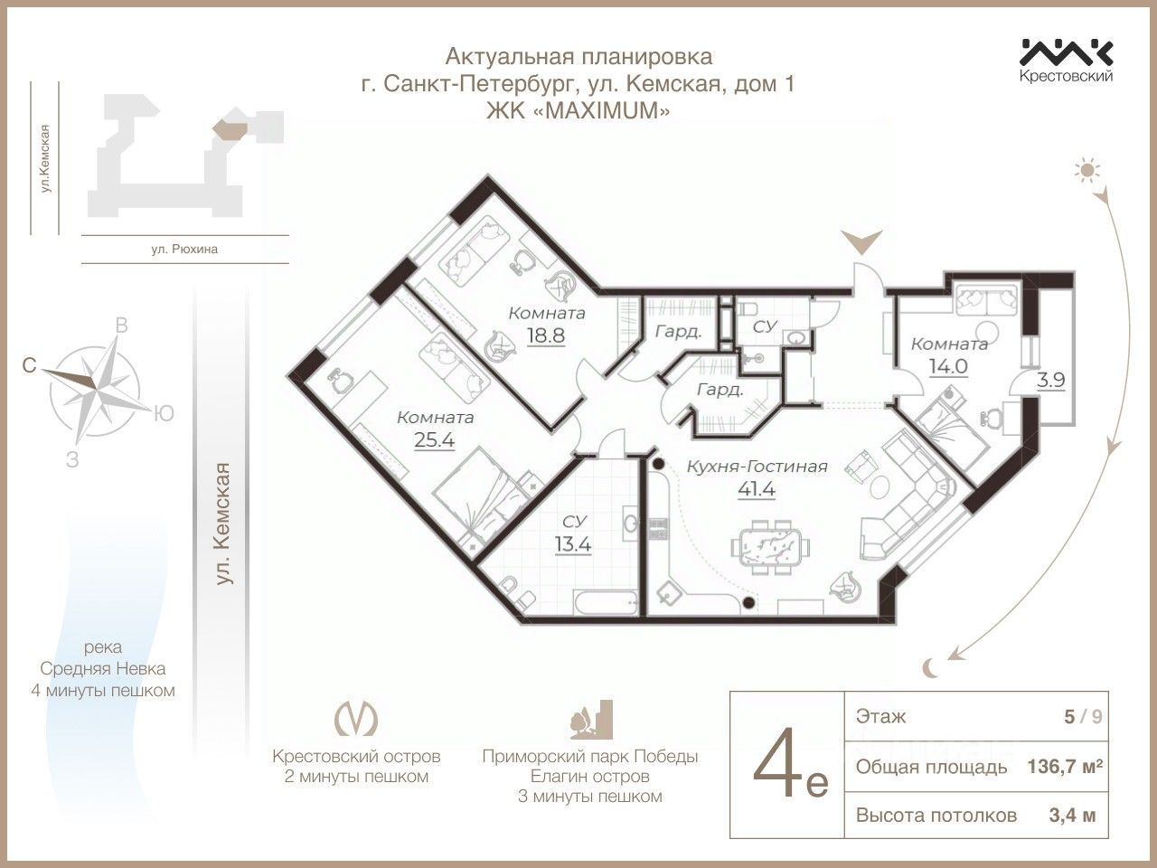 Арт. 116412794 Ваш идеальный мир на Крестовском острове. Просторная квартира 137 м² в элитном клубном доме по отличной цене!