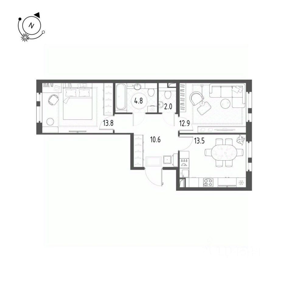 340685 Продается светлая двухкомнатная квартира, в современном жилом комплексе ЖК Монография . 57,6 м2