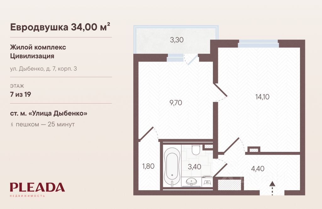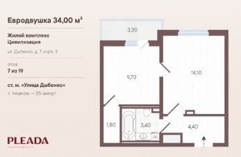 Продуманная планировка: каждый метр работает на ваш комфорт, вместительная гардеробная избавит от лишней мебели.