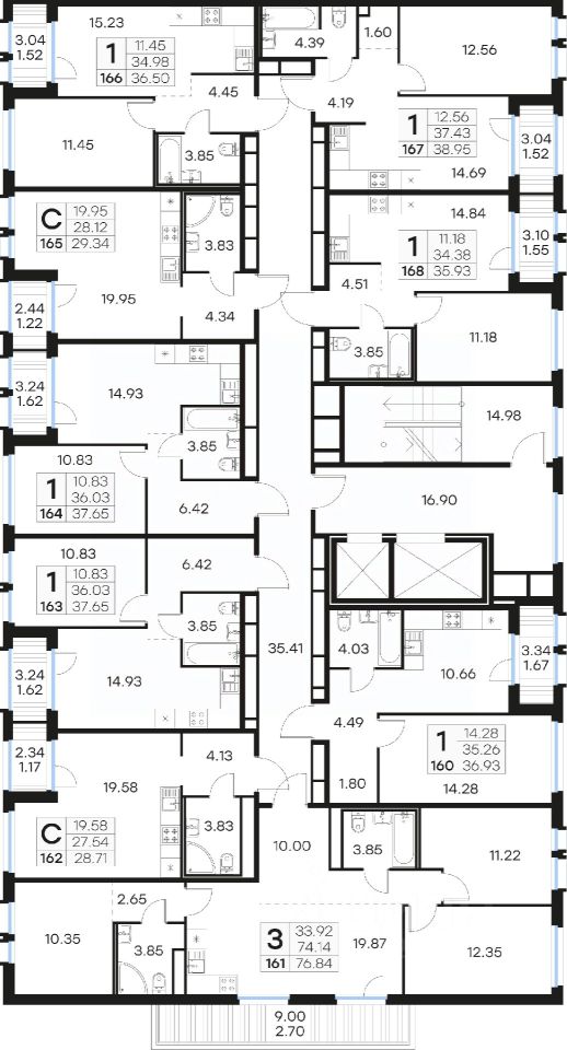 Продается 3-комн. квартира на 3-м этаже в проекте комфорт-класса GloraX Парголово. Общая площадь лота составляет 76,84 кв. м, из которых 33,92 кв. м отведено под жилую и 19,87 кв. м под кухонную зону. Номер квартиры - 161.