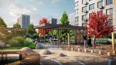 Приватное пространство внутреннего двора с беседками с розетками для работы и отдыха, зеленый двор с уютным многоуровневым освещением, детскими эко-площадками и спортивными workout создает неповторимую атмосферу, заряжающую энергией на новые свершения.