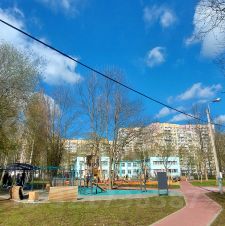 Во этом дворе 2 детских сада, лицей, пункт полиции, детские площадки, футбольное поле, хоккейная площадка.