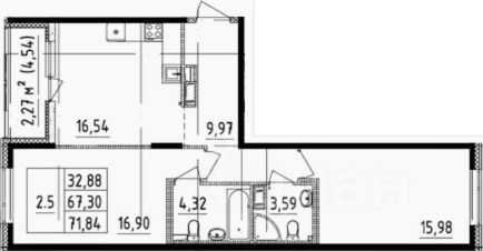 Квартира очень светлая, планировка распашонки всегда просторнее, чем есть: комнаты изолированы коридором. Черновая отделка.
