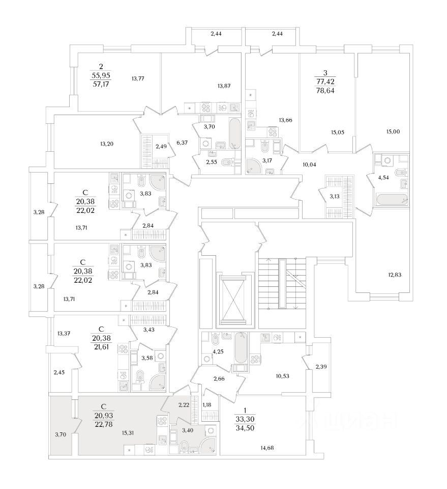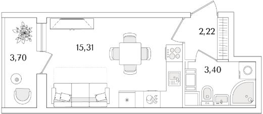 Квартира находится в 9 этажном доме, в Очередь 2, Корпус 1 на 9 этаже. Общая площадь квартиры 22,78 кв.м.
