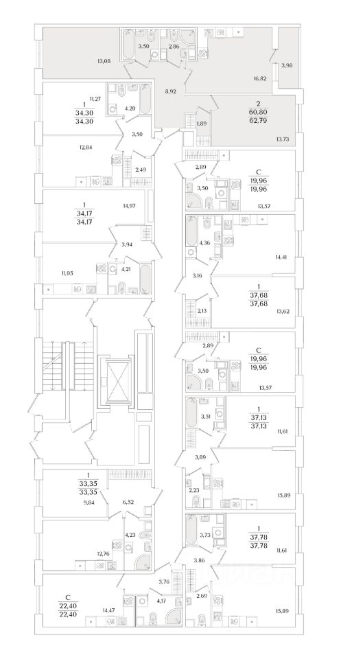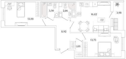 Квартира находится в 9 этажном доме, в Очередь 2, Корпус 1 на 2 этаже. Общая площадь квартиры 62,79 кв.м.