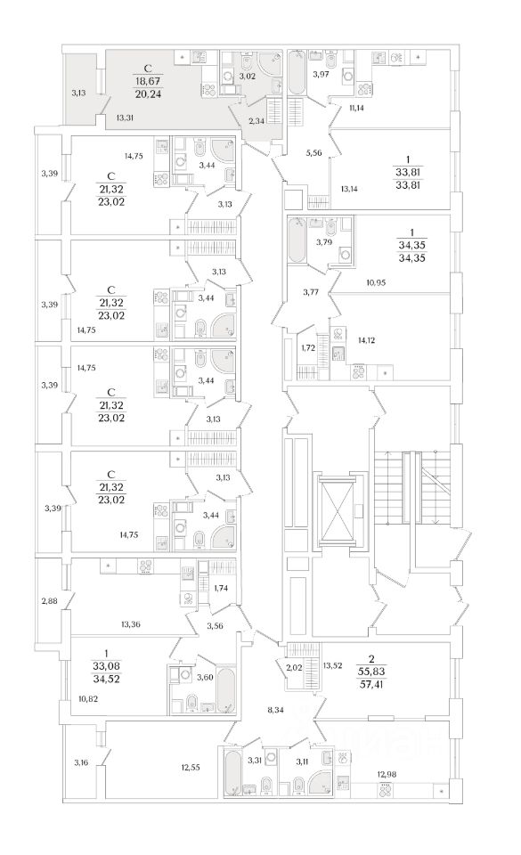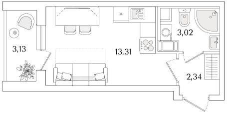 Квартира находится в 9 этажном доме, в Очередь 2, Корпус 2 на 2 этаже. Общая площадь квартиры 20,24 кв.м.