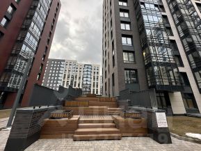 На закрытой территории комплекса установлены беседки и амфитеатр, зоны для работы и детских игр. Реализована концепция двор без машин, а также вся территория находится под видеонаблюдением. На первом этаже коммерческие помещения, на подземном индивидуальные кладовые.