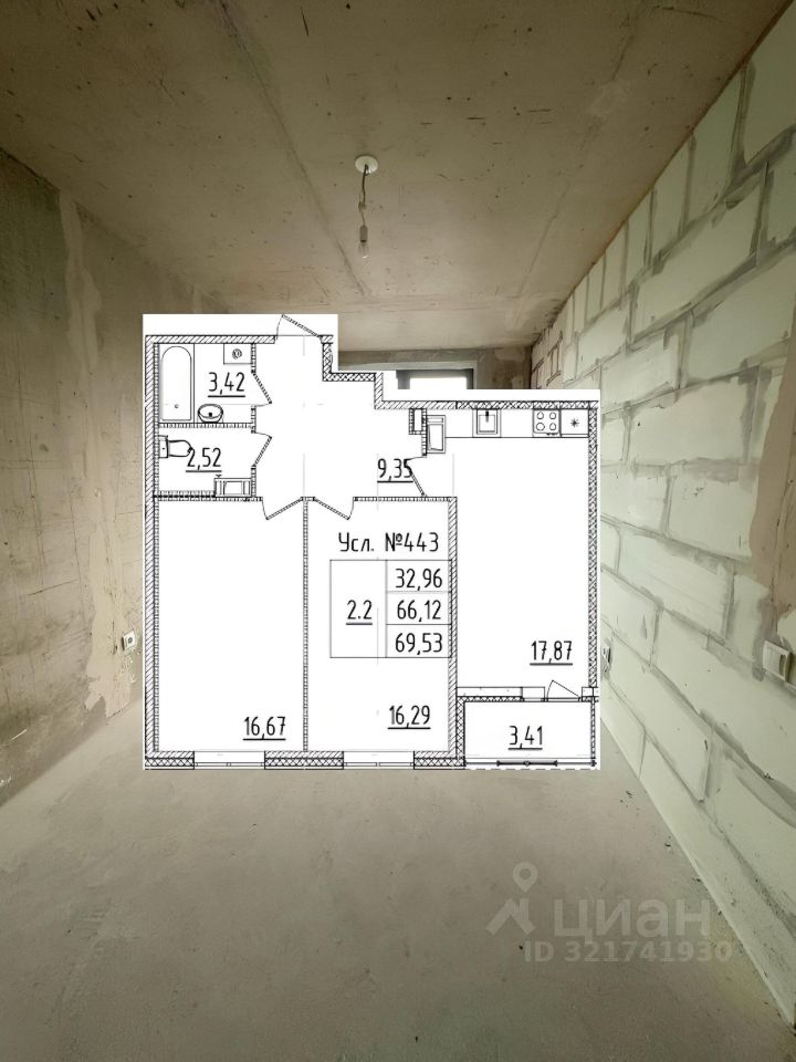 Квартира очень светлая, все окна выходят на ЮГ в тихий двор. Большая кухня-гостиная, черновая отделка.