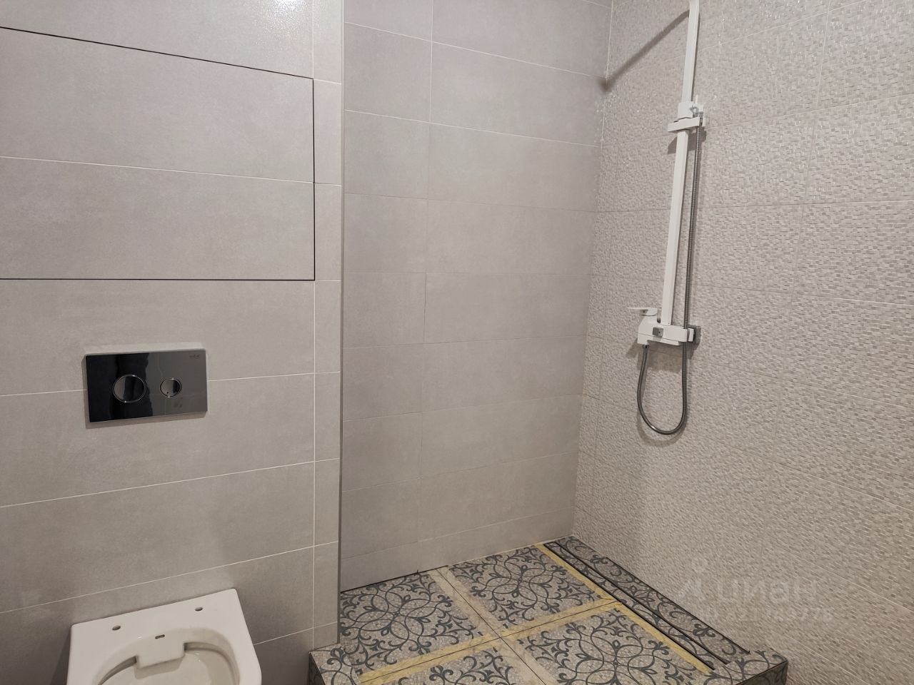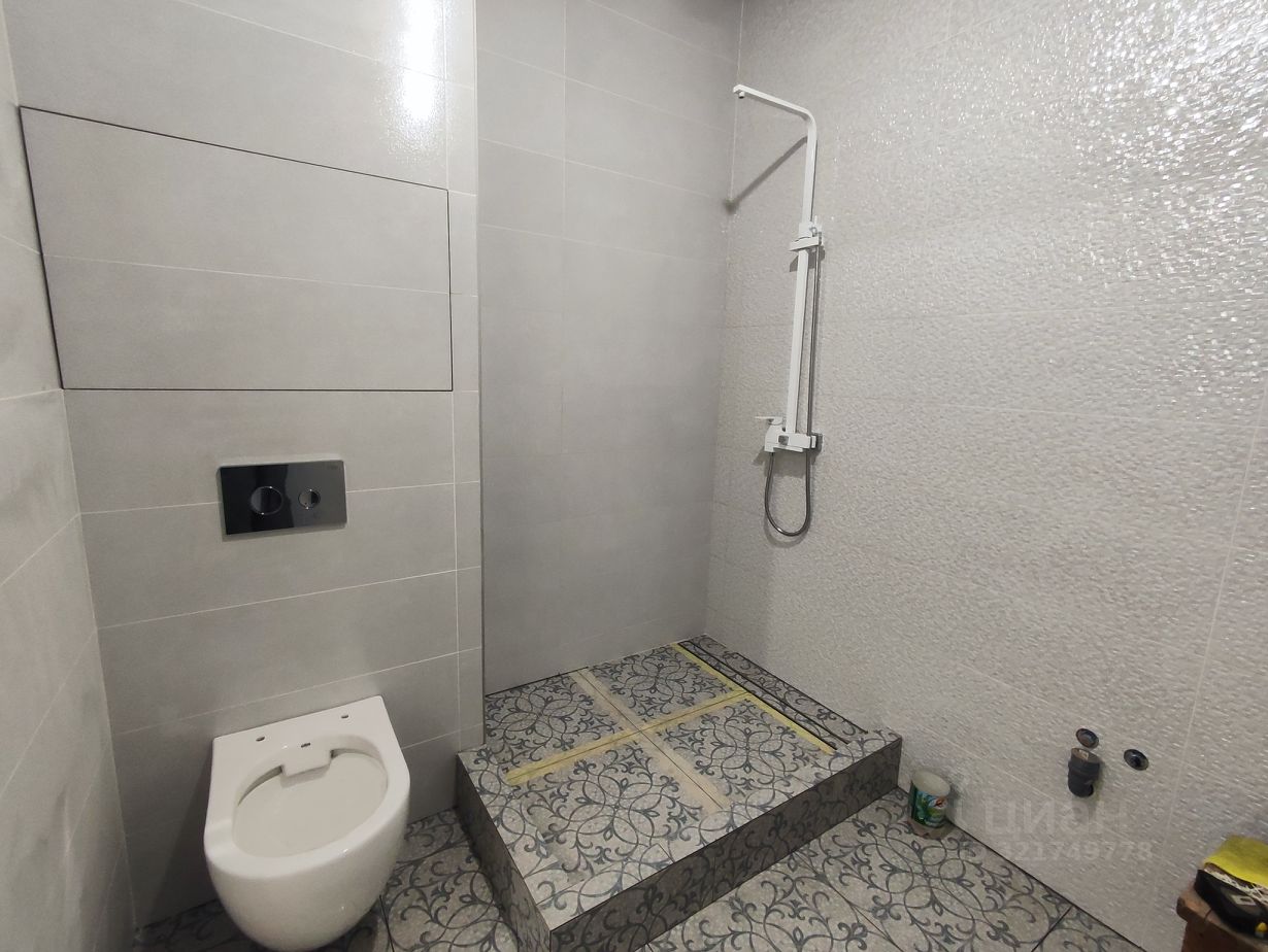 Выполнен ремонт в санузле, установлен унитаз, оборудована душевая кабина, выложена плитка.