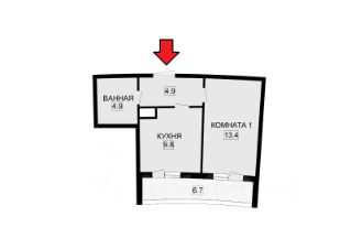 Общая площaдь кваpтиры с учeтoм лоджии 39,7 кв.м.