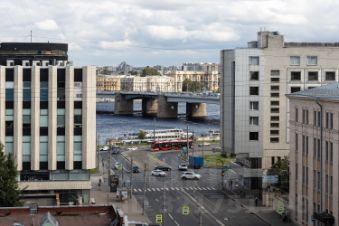 Вид на Неву: Собственная терраса и окна выходят на акваторию Невы с видами на мосты Петра Великого и Александра Невского.