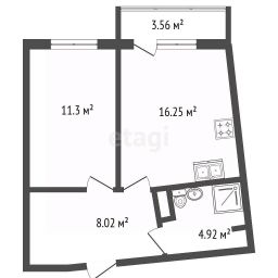 КОМОФОРТНАЯ 1-КОМНАТНАЯ КВАРТИРА 44,05 М² С БОЛЬШОЙ КУХНЕЙ 16,2