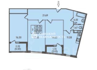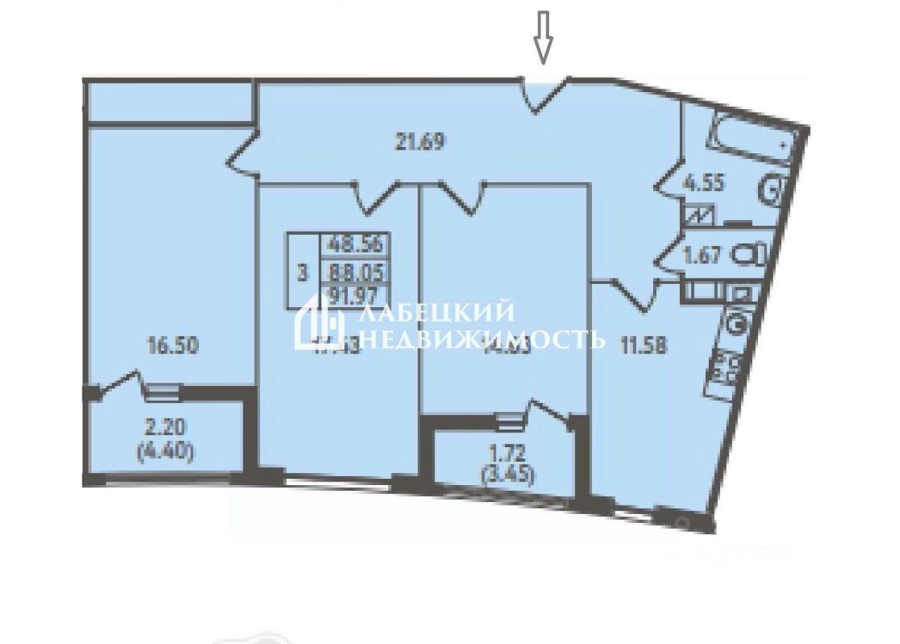 ПРОСТОРНАЯ, СВЕТЛАЯ трёхкомнатная квартира общей площадью 88.05 м² с действительно КОМФОРТНОЙ планировкой и ДВУМЯ уютными лоджиями с видом во двор.